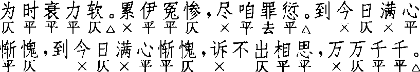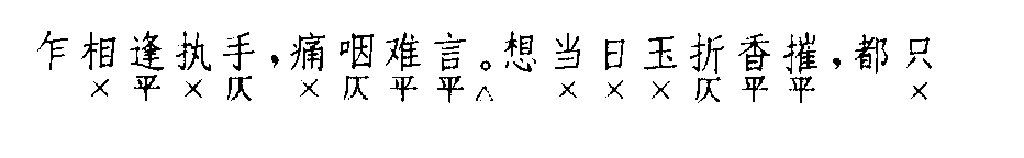 | 释义 | 豆叶黄 豆叶黄洪昇 《长生殿》 ![]() ![]() 全曲十句:4,4△。6,6△。4,4△。6,(叠)6,4,4△。 《南词简谱》谓:第三句及第七句“皆可用叠”;并谓第三句叠,第七句即可不叠,“任用一叠可也”。今按:第三句及第七句两用叠句者颇多,如《紫箫记·边思》、《水浒传·渔色》、《东郭记·钻穴隙》、《龙膏记·邂逅》、《风筝记·诧美》均是。《牡丹亭·寻梦》第三句下原注“又”字,钱南扬校本已补叠句;第七句文林本、朱墨本均作叠句,见钱校。《拜月亭·抱恙离鸾》第三、七句均只有上半句,叠句方出全句。《娇红记·期阻》只第七句叠;《泣舟》则叠第三句,第七句只半句,叠句为全句。《赠书记·轻烟辨男》词式有变化:第三、四句均四字;第五句六字,第六句作四字二句。〔豆叶黄〕早见于《张协状元》第十一出,单用一支,共七句;《杀狗记·王老谏主》同《张协状元》,当为早期词式。《精忠记·诛心》亦较简短,末句前用叠句,为早期过渡形式。与词牌〔忆王孙〕一名〔豆叶黄〕者不同。与诸宫调、北曲均不同。《紫箫记·边思》误题“逼叶发”。 ☚ 品令 幺令 ☛ 豆叶黄 豆叶黄即《忆王孙》。宋张元幹词“冰溪疏影竹边春”一首及“疏枝冷蕊忽惊春”一首名《豆叶黄》,自注云:“唐腔也。”见《芦川词》。 ☚ 更漏子 两同心 ☛ |