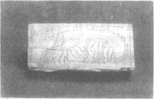 | 释义 | 象牙雕虎纹板 象牙雕虎纹板西汉。长4厘米,残宽1.8厘米。1968年河北省满城县陵山汉墓出土。河北省文物管理处藏。长方形,沿边缘刻一矩形框,其内阴线刻的伏虎,尾高高地甩起,作仰首长啸状,一副被激怒、准备跃身而起的样子。虎纹是古代寓意纹饰,用以表示勇猛,天下无敌。