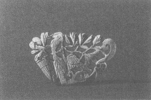 元。高4.2厘米,长6.9厘米。辽宁省喀左大城子出土。辽宁省博物馆藏。呈倒梯形,其间镂空透雕鸿雁、玉兰、卷草等,用刀简洁、粗犷,具有较强的民族特色。
