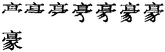 豪Háo现行较罕见姓氏。今河北之固安、山西之运城、四川之成都等地有分布。汉族姓氏。《续通志·氏族略》收载,未详其源。 宋代有豪彦,乾道进士; 明代有豪英,天顺中宜都知县。(按:宜都,《续通志·氏族略·补遗·平声》注作“宣都”,误。) 豪háo❶箭豬項脊間的長毛。見“豪豬”。 ❷指特出的人材。見“豪俊”。 ❸豪放,豪俠。見“豪舉”。 ❹通“毫”,長尖的細毛。趙壹《迅風賦》:“經營八荒之外,宛轉豪毛之中。”亦指細微之物。見“豪分”、“豪芒”。 豪读音h·ao(ˊ),为ao韵目,属ao—iao韵部。胡刀切,平,豪韵。 ❶英豪;豪杰。 ❷豪爽;直爽;气魄大。 ❸豪强;强横。 上一条: 薅 下一条: 壕 豪〔hao〕 豪猪 〔hao zhu〕 jins jins. 豪{}五6902①形迟缓,不急切。闽语。广东揭阳〖 〗。人早早住上船人家一早就上船,无按你向~不像你那么不急切,船□(〖 〗)响正到船的汽笛响了才到。②形能干。闽语。台湾〖 〗。③动苦求,苦待。赣语。湖北蒲圻〖 〗。走开些,莫在这儿~到。   豪háo❶才能出众的人 △ 文~|~杰。 ❷气魄大;直爽痛快 △ ~迈|~爽。 ❸权势大;强横(hèng) △ ~门|巧取~夺。 ❹感到光荣 △ 自~。 豪❶才能出众的人:~杰︱英~︱文~。 ❷气魄大;不拘束:~富︱~华︱~侈︱~情︱~兴(xing)︱~放丨~迈︱~爽丨~气丨~壮︱~语丨~饮︱~侠︱粗~︱自~︱~情壮志︱~言壮语丨~放不羁(ji)丨哀丝~竹。 ❸强横:~横(heng)丨~强丨~绅丨~客丨~门丨~门大族丨巧取~夺。 ❹强横霸道的人:土~丨土~劣绅。 豪háo❶ 有才有德的人:豪杰│英豪。 ❷ 有钱有势的人:富豪│土豪。 ❸ 气魄宏大,性情爽快,行为不受常规约束的:豪情│豪饮│豪言壮语。 ❹ 蛮横:巧取豪夺。 豪豪háo箭猪项脊间的长毛。比喻特出的人才。晋·左思《蜀都赋》:“三蜀之豪,时来时往。” 豪hao豪赌 豪放 豪富 豪横 豪华 豪杰 豪举 豪客 豪迈豪门 豪气 豪强 豪情 豪奢 豪绅 豪士 豪爽 豪侠 豪兴 豪饮 豪雨 豪语 豪宅 豪壮 豪族 粗豪 富豪 土豪 文豪 英豪自豪 豪放派 豪放不羁 豪情壮志 豪言壮语 土豪劣绅 巧取豪夺 豪háo豪háo〖形容词〗 有势力的(1)。《种树郭橐驼传》:凡长安豪家富人为观游及卖果者,皆争迎取养。——凡是长安有势力而富裕的人家要种花木供观赏的,以及卖水果的,都抢着接他到家里供养。