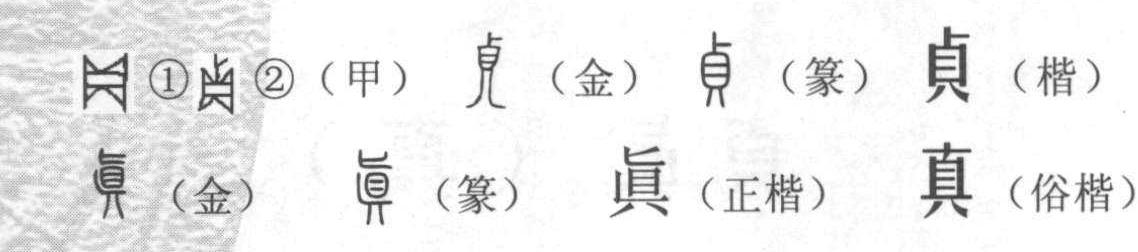 “真” 虽然晚出,它是带着祖先基因、与祖先血肉相连,在哲学的浓郁氛围中走马上任的。它是人性中具有与善美同在的德行。 直、贞、真同声同源。同以 “只” 为声母,同声自然同源。说同源,同就同在它们对事物的注视与观察上。 直与贞是两个甲骨文时出勤率较高的古字,但是由于人们认识事物的不断深化,在“直”、“贞”不能充分表达人们的某种领悟时,“真”就应运而生了。 从字理讲,直为动,贞为静,故直为阳,贞为阴,是阴阳的结合产生了“真”的。“汉字的本质是字形”,古人造字,字形决定字意,细品起来饶有兴味,妙不可言。 “真”是“直贞夫妇” 的合生子,它没有童年,一出世便带着父母的基因与几分天真,僭透世事,走进了哲学的殿堂。