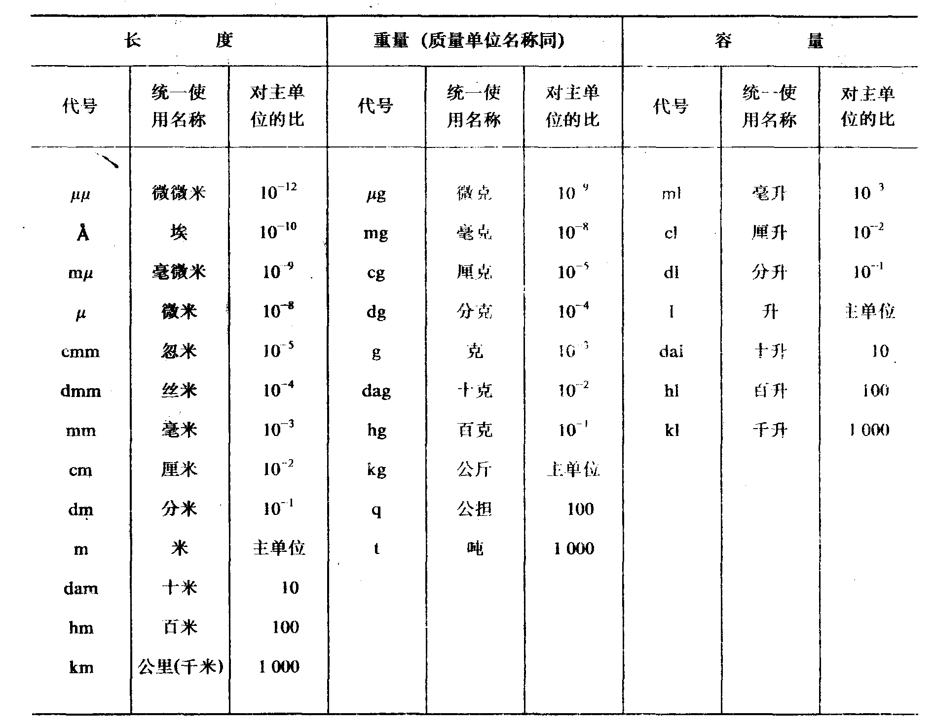 财经大辞典︱计量单位表 计量单位表 1.国际公制计量单位名称表