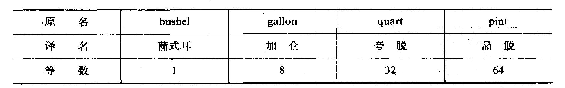 注: 1英蒲式耳=1.283676立方英尺 1英干量加仑与液量加仑同 1美蒲式耳=1.244458立方英尺 1美干量加仑=268.803立方英寸 二、 容量表 (液量)