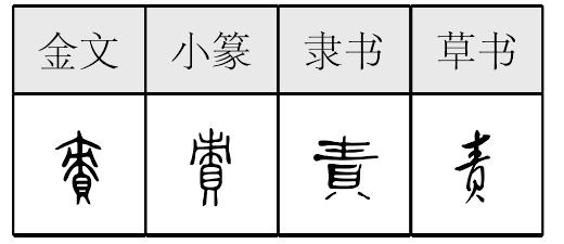 *责(責)zé8画 贝部 (1) 要求(做成某事或做事达到一定标准): ~成|~令|求全~备。 (2) 责任: 负~|尽职尽~|天下兴亡,匹夫有~。 (3) 质问: ~问|诘~。 (4) 批评指摘: ~备|斥~|谴~。 (5) 处罚: ~罚|杖~。 责責zé甲骨文和商代金文族徽字作朿(刺的本字)。象一锋或三锋、四锋的利器。用来杀牛、羊、豕(猪)等,以供祭祀。下面或加贝(貝),用法相同。或假借方国名。又作“亚朿”,人名。商代金文又用朿为人名。朿下加贝,即责字。也用为刺牲义。朿为人名,即杀猪牛羊的人。朿下加贝,也即王赏他屠宰的贝。甲金文、小篆和一部分汉隶同。隶楷后简化“朿”为三横一竖穿过出头,成责(責)字。责是会意兼形声字。杀猪等为职,就是有责(责任)。现代例如:负责|尽责|有责。尽职多,引申有积()累,西周金文又用为积,作积()的本字。也是有成绩。 春秋金文又用为绩,即绩的本字。引申有要求义。如:求全责备|责己严于责人。又引申为指摘过失。如:责罚|斥责。又为责问,质问,诘问。古书中又同债(债即从人从责,责亦声),又是债的本字。 责責★繁◎常★常