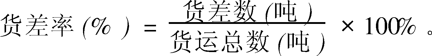 考核期内货差数(吨)与完成货运总数(吨)之比。考核货物运输质量的重要指标。计算公式为: