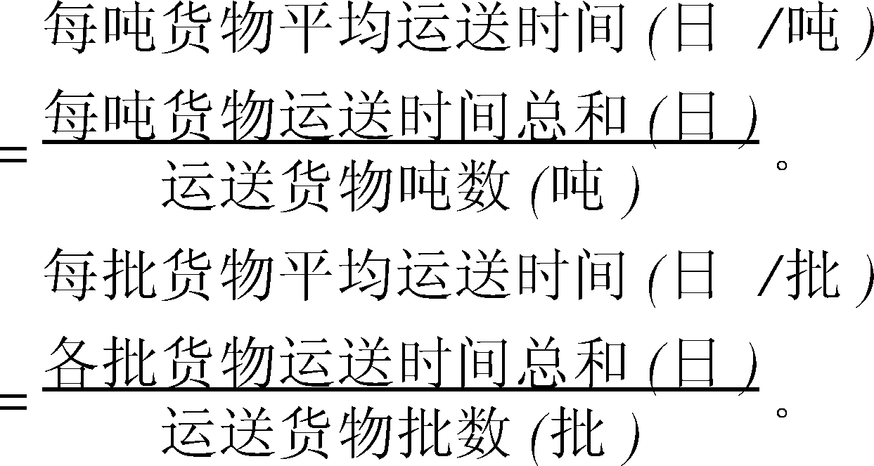 | 释义 | 货物平均运送时间 货物平均运送时间average cargo delivery time平均每吨(每批)货物从发送地运至目的地所需要的时间。反映运输工作质量的重要指标。计算公式为: