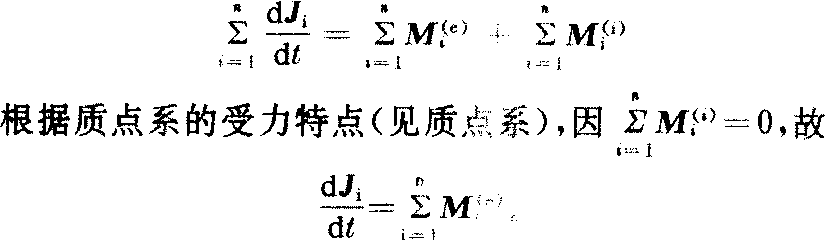 | 释义 | 质点系角动量定理 质点系角动量定理zhidianxi jiaodongliang dingli质点系动力学的基本定理之一。又称质点系动量矩定理。表示质点系的角动量的变化和作用于质点系的外力矩之间的关系。质点系对定点o的角动量等于各质点对该定点的角动量之和,即J=∑Ji,Ji是第i个质点的角动量,这个质点对o点的角动量定理为:dJi/dt=M(e)t+M(i)i,M(e)i是该质点的外力矩之和,M(i)i是该质点的内力矩之和。如果质点系有n个质点,就会有n个这样的方程。将它们相加起来,得到 ☚ 质点系的角动量 质点系角动量守恒 ☛ |