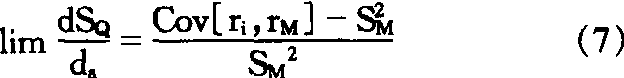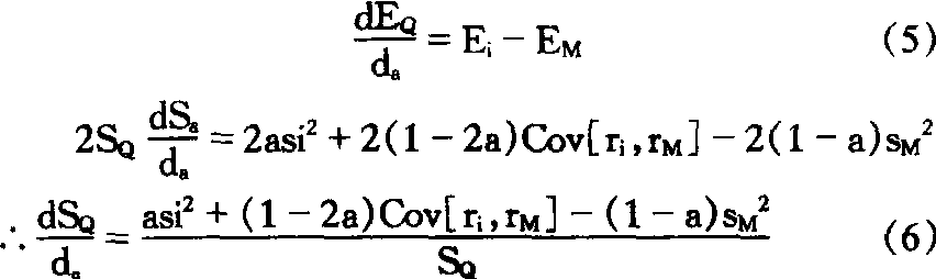 SQ2=a2·S2i+2a(1-a)Cov[ri,rM]+(1-a)2S2M (4)这里,为了观察a的变化对EQ、SQ的影响,把(3)及(4) 两公式用a微分时,得出: