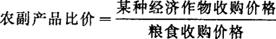 指同一市场同一时间各种农副产品收购价格之间的比例。在我国,农副产品比价主要是重要经济作物同粮食之间的比价,如棉粮、麻粮、烟粮等比价。其计算公式如下: