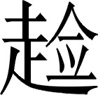 DA5F〈文〉❶快步行走(见《玉篇》)。❷〈文〉与“趛”同。低头快走(见《集韵》)。