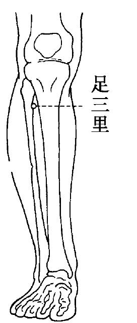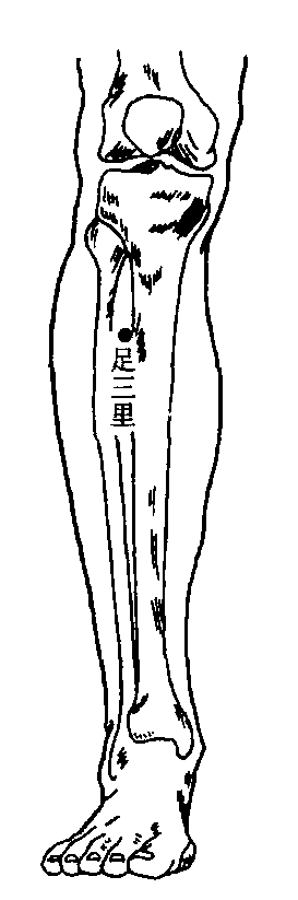 图73 足三里 足三里中医腧穴名。属足阳明胃经,合穴。定位:犊鼻穴(髌骨下缘,髌韧带外侧凹陷)下3寸,胫骨前嵴外一横指处。主治:胃痛,呕吐,噎膈,腹胀,泄泻,痢疾,便秘,乳痈,肠痈,下肢痹痛,水肿,脚气,癫狂,虚劳羸瘦。又可强壮保健穴。操作:直刺1—2寸。 ☚ 少泽 隐白 ☛ 足三里 足三里足阳明胃经腧穴。位于外膝眼下3寸,小腿胫骨前嵴外一横指处。具有补益脾胃,和肠化滞,调和气血,疏通经络,扶正培元,祛邪防病的功效。主要治疗消化系统的疾患,有“肚腹三里留”之说。对于胃脘痛、呕吐、腹胀、泻泄、痢疾、便秘、肠痈等效果显著,是治疗腰腿酸痛、下肢不遂、虚性喘息、乳痈、乳少、痛经、糖尿病、水肿、小儿疳积、荨麻疹等的常用穴。临床采用针灸直刺1~2寸。该穴为足阳明胃经的合穴。具有强壮作用,为当今保健要穴。对于身体虚弱,体质差的人来说,可用艾条悬灸足三里穴,达到强身防病的作用。 ☚ 合谷 人中 ☛ 足三里Tsusanli系足阳明胃经上的重要针灸穴位之一。取穴:在犊鼻下3寸,距骨前缘1横指,当胫骨前肌上,屈膝取之。施针时直刺1.5~3寸。主治呕吐、胃痛、腹胀、消化不良、腹泻、便秘、乳痈、下肢风湿痛、瘫痪、水肿、高血压、昏厥、多发性神经炎、血栓闭塞性脉管炎、乳汁分泌减少、小儿疳疾等。 足三里经穴名。别名“下陵”、“鬼邪”。属足阳明胃经,合穴。位于外膝眼下三寸,胫骨前嵴外侧一横指处。主治:胃痛,呕吐,腹胀,肠鸣,消化不良,泄泻,便秘,痢疾,喘咳痰多,乳痈,头晕耳鸣,心悸,癫狂,中风,膝胫酸痛等。直刺0.5—1.5寸;可灸。 足三里 足三里足阳明胃经穴。取穴:在犊鼻穴下三寸,即在膝下三寸,胫骨前嵴外一横指处(见图2—1—4)。主治:胃痛、呕吐、噎膈、腹胀、泄泻、痢疾、便秘、乳痈、肠痈、下肢痹痛、水肿、脚气、虚劳赢瘦。刺灸法:直刺1~2寸,向下放射可至脚趾;针尖略向上斜刺,并不断地捻转运针,其针感沿胃阳明经逐渐循股走至髀关、天枢穴处,少数可走至胃腑、剑突处。艾炷灸3~7壮;艾条灸5~20分钟。 ☚ 迎香 丰隆 ☛ 足三里zúsānlǐ经穴名。代号ST36。原名三里, 出《灵枢·本输》等篇。属足阳明胃经。合穴。位于小腿前外侧外膝眼(犊鼻穴) 下3 寸, 胫骨前缘外开一横指处。主治胃痛、呕吐、腹痛、泄泻、痢疾、头痛、失眠、心悸、虚喘、目疾、耳聋、鼓胀、水肿、癃闭、淋浊、遗尿、痹痛、胃炎、肠炎、溃疡病、胆囊炎、阑尾炎、高血压、贫血、下肢麻痹或瘫痪等, 并有强壮作用。直刺1 ~ 2寸。灸3 ~15 壮或10 ~30 分钟。