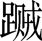 踩踏,践害。例:贼娃子晚上先~好路径,后去害骚人!❍ 用脚~人,踢人!《集韵》:“,践害之也。”