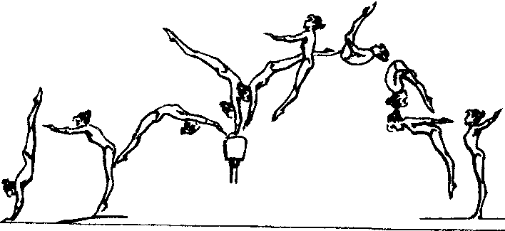 支撑跳跃中难度动作之一。属于手翻空翻复合型动作。运动形态特征是:助跑通过踺子过渡到“背向”踏跳,“背向”进入第一腾空,“背向”入射撑马、推离,然后以屈体姿势向后翻转一周飞越马身。技术要点:趋步后上体侧转前压,两臂远撑,吊腰摆腿经倒立,脚面立即下压,同时用力推离。两腿向后下方踹板,起跳后空中出胸,两臂用力向后上摆伸,并迅速在头后撑马,紧接脚面上顶用力推离。然后梗头起肩、圆背屈体、翻臀抱腿进行翻转,当转成俯势时,两臂立即上举,抬头起肩,向上立腰,两腿后伸准备落地。当熟练掌握踺子后手翻团身后空翻技术后,可将横马放置在海绵坑边直接练习。比较熟练掌握后移到纵马练习。