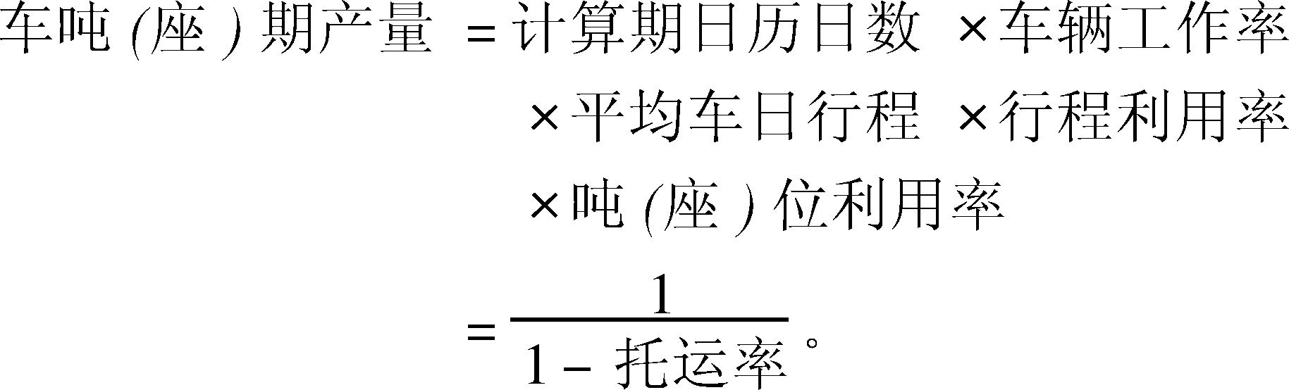 | 释义 | 车吨(座)期产量 车吨(座)期产量(vehicle tonnage(seat) period freight volume道路运输业务中反映汽车单车运用效率的综合指标。一定时期内营运车辆平均每一吨(座)位实际完成的周转量。以吨公里为计量单位。车吨(座)期产量可根据需要分别计算车吨(座)年产量、季产量、月产量和日产量。其计算公式为: