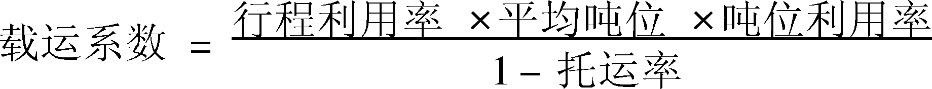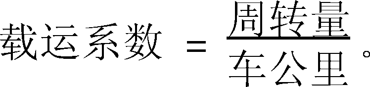 | 释义 | 载运系数 载运系数carrying coefficient又称“车公里产量”。车辆完成的周转量与总行驶里程之比。道路运输业务中反映车辆利用程度、装载能力和拖挂能力的综合指标。在车公里一定的情况下,提高载运系数,可增加周转量,提高车辆利用率,降低单位运输成本。其计算公式为: