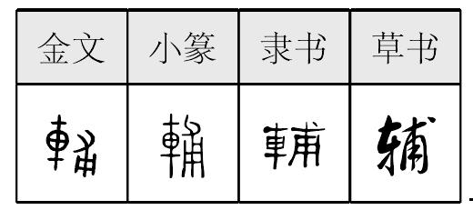 fǔ輔,形声,从車,甫声,本义为绑在车轮外侧用以夹毂的两条直木,可增加轮辅载重力,引申为从旁协助、面颊等。《简化字表》类推简作“辅”。 【辨析】 辅/扶/傅 “扶”指具体的搀扶,“辅”和“傅”指抽象的扶助,这三个字音义相近,是同源字。辅 輔; 金 篆 隶fǔ【析形】形声字。古文字形从车,甫声。 【释义】《说文》:“人颊车也。”即嘴旁颊骨,此乃引申义。本义指在车轮外另加上用来夹毂的两条直木,用以增强车辐的承载力。引申为帮助、佐助,为辅的常用义,古今相同。[辅车相依,唇亡齿寒]颊骨和牙床骨互相依靠,嘴唇没有了门牙因失去依存而寒冷。比喻事物互为依存的利害关系。 【shape analysis】It is the pictophonetic character. In ancient character it is related to 车(jū,cart) and sounds like the pronunciation of甫(fǔ). 【original meaning】 The two straight timbers for clipping cart hub on cartwheels to strengthen the bearing capacity of spoke. |