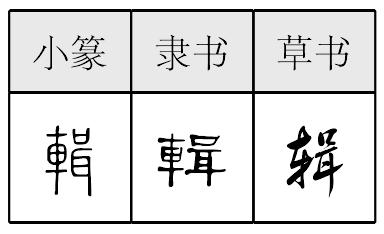 【提示】车,末笔是竖; 位于字左时横改提,且末笔是提。耳,中间两横宋体与左右两边相接,楷体与左边相接,与右边相离。 *辑(輯)jí13画 车部 (1) 收集材料,作系统的整理、编选: ~录|编~。 (2) 以某项内容为中心而编辑的一期刊物、一组文章或单册书: 特~|专~。 (3) 整套书的一部分: 丛书第一~。 辑輯jí上古形声字。从车(車),咠(qì,从口从耳,附耳私语意)声。义为车厢。引申有收敛义。中古再引申同“集”,有聚集义。特指聚集材料编书。如:辑录|纂(zuǎn,编)辑|编辑。转为名词,指聚集很多材料而成的书。如:丛书第一辑。 辑輯★繁◎常★常