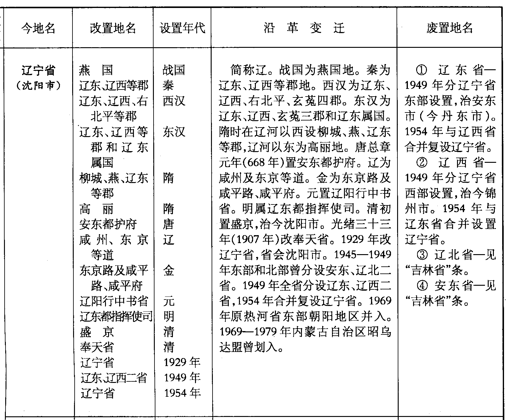 简称辽。战国为燕国地。秦为辽东、辽西等郡地。西汉为辽东、辽西、右北平、玄菟四郡。东汉为辽东、辽西、玄菟三郡和辽东属国。隋时在辽河以西设柳城、燕、辽东等郡,辽河以东为高丽地。唐总章元年(668年)置安东都护府。辽为咸州及东京等道。金为东京路及咸平路、咸平府。元置辽阳行中书省。明属辽东都指挥使司。清初置盛京,治今沈阳市。光绪三十三年(1907年)改奉天省。1929年改辽宁省,省会沈阳市。1945—1949年东部和北部曾分设安东、辽北二省。1949年全省分设辽东、辽西二省,1954年合并复设辽宁省。1969年原热河省东部朝阳地区并入。1969—1979年内蒙古自治区昭乌达盟曾划入。