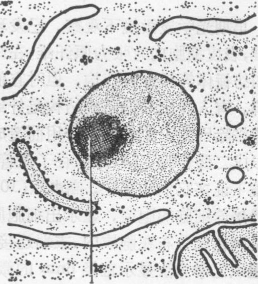 过氧物酶体(大鼠肾小管上皮细胞) 1. 晶体 利用细胞化学DAB反应可以追踪过氧物酶体的来源,但所得结果不一,有各种不同的推测。有人见到过氧物酶体的膜和滑面内质网的膜连续,主张它们是从滑面内质网芽生而成。另有人则未见这种膜相连续的现象,认为过氧物酶体是自身以出芽方式生成,而过氧化氢酶则由核糖体合成直接进入过氧物酶体。另有人用DAB方法显示过氧化氢酶在游离的核糖体上,并在它附近见有染色稍浅、体积较小、无膜的过氧物酶体。但它究竟从何而来,尚待探讨。 ☚ 溶酶体 细胞骨架 ☛ |