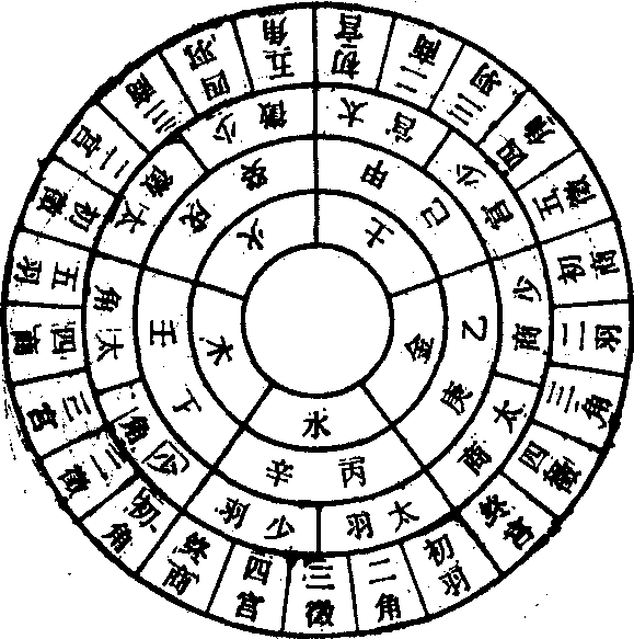 五音建运太少相生图 五步推运 主运五步,在一年的五个季节中,木运主春令而为角。木能生火,故火运次之,主夏令而为徵。火能生土,故土运又次之,主长夏而为宫。土能生金,故金运又次之,主秋令而为商。金能生水,故水运又次之,主冬令而为羽。在这春木角、夏火徵、长夏土宫、秋金商、冬水羽的次序中,再辨别其属阳年、属阴年、其为太、其为少,从其主岁的本身而推到初运木角,这就称为五步推运。例如: 甲年为阳土,运属太宫用事,必须按照主运五步圆周图从太宫土运本身依次上而推至初运的角,便会清楚地看到:生太宫的是少徵,生少徵的是太角,因而逢甲年的主运,便是起于太角。太少相生,则为太角生少徵,少徵生太宫(甲本运),太宫生少商,少商生太羽,而终于太羽。己年为阴土,运属少宫用事,从阴土运本身依次上而推至初运的角,便见到生少宫的是太徵,生太徵的是少角。因而己年的主运,便是起于少角。太少相生,则为少角生太徵,太徵生少宫(己本运),少宫生太商,太商生少羽,而终于少羽。 乙年为阴金,运属少商用事,从阴金运本身依次上而推至初运的角,便见到生少商的是太宫,生太宫的是少徵,生少徵的是太角。因而乙年的主运便是起于太角。太少相生,则为太角生少徵,少徵生太宫,太宫生少商(乙本运),少商生太羽,而终于太羽。 庚年为阳金,运属太商用事,从阳金运本身依次上而推至初运的角,便见到生太商的是少宫,生少宫的是太徵,生太徵的是少角。因而逢庚年的主运,便是起于少角。太少相生,则为少角生太徵,太徵生少宫,少宫生太商(庚本运),太商生少羽,而终于少羽。 丙年为阳水,运属太羽用事,从阳水运本身依次上而推至初运的角,便见到生太羽的是少商,生少商的是太宫,生太宫的是少徵,生少徵的是太角。因而逢丙年的主运,便是起于太角。太少相生,则为太角生少徵,少徵生太宫,太宫生少商,少商生太羽(丙本运),而终于太羽。 辛年为阴水,运属少羽用事,从阴水运本身依次上而逆推至初运的角,便见到生少羽的是太商,生太商的是少宫,生少宫的是太徵,生太徵的是少角。因而逢辛年的主运,便是起于少角,太少相生,则为少角生太徵,太徵生少宫,少宫生太商,太商生少羽(辛本运),而终于少羽。 丁年为阴木,运属少角用事,角本是初运,无从上推,则逢丁年即从少角起算,太少相生,即少角(丁本运)生太徵,太徵生少宫,少宫生太商,太商生少羽,而终于少羽。壬年为阳木,运属太角用事,亦无从上推,即从太角起算。太少相生,即太角(壬本运)生少徵,少徵生太宫,太宫生少商,少商生太羽,而终于太羽。 戊年为阳火,运属太徵用事,从阳火运本身上推一步,即是少角。因而逢戊年的主运,便是起于少角。太少相生,则为少角生太徵(戊本运),太徵生少宫、少宫生太商。太商生少羽,而终于少羽。 癸年为阴火,运属少徵用事,从阴火运本身上推一步,即是太角,因而癸年的主运,便是起于太角。太少相生,则为太角生少徵(癸本运),少徵生太宫,太宫生少商,少商生太羽,而终于太羽。 如此逐步推算,得知本年的主运在哪一步,亦明白主运必始于角终于羽一定不易之理。 交司时刻 主运五步,分司五季而成为每岁的常令,其于各年交司的时刻如下: (1) 申、子、辰年 初运角: 大寒日寅时初初刻起。 二运徵: 春分后十三日寅正一刻起。 三运宫: 芒种后十日卯初二刻起。 四运商: 处暑后七日卯正三刻起。 五运羽: 立冬后四日辰初四刻起。 (2) 巳、酉、丑年 初运角: 大寒日巳初初刻起。 二运徵: 春分后十三日巳正一刻起。 三运宫: 芒种后十日午初二刻起。 四运商: 处暑后七日午正三刻起。 五运羽: 立冬后四日未初四刻起。 (3) 寅、午、戌年 初运角: 大寒日申初初刻起。 二运徵: 春分后十三日申正一刻起。 三运宫: 芒种后十四日酉初二初起。 四运商: 处暑后七日酉正三刻起。 五运羽: 立冬后四日戌初四刻起。 (4) 亥、卯、未年 初运角: 大寒日亥初初刻起。 二运徵: 春分后十三日亥正一刻起。 三运宫: 芒种后十日子初二刻起。 四运商: 处暑后七日子正三刻起。 五运羽: 立冬后四日丑初四刻起。 申、子、辰、寅、午、戌六阳年,寅为木,午为火,申为金,子为水,辰与戌为土,此为十二支五行之属于阳者。巳、酉、丑、亥、卯、未六阴年,卯为木,巳为火、酉为金、亥为水,丑与未为土,此为十二支五行之属于阴者。凡阳年的初运,均起于阳时,所以申、子、辰三阳年都起于寅;寅、午、戌三阳年都起于申。阴年的初运,均起于阴时,所以巳、酉、丑三阴年都起于巳;亥、卯、未三阴年都起于亥。统观六阳六阴十二年中所交司的时刻,从寅到丑,顺序而下,与全年月建的次序一样,秩然无紊。五运推移而司岁气的道理,于此越发显然。《素问·六元正纪大论》云:“五运气行,主岁之纪,其有常数。”又说:“先立其年,以明其气,金、木、水、火、土运行之数; 寒、暑、燥、湿、风、火临御之化,则天道可见,民气可调。”因此,认为主运之建立,即所以说明一年五纪常令运化的秩序而已。 客运 即中运之推步而计算者。中运统管一年,客运则以每年的中运为初运,循着五行相生的次序,分五步运行(每步为七十三日零五刻),行于主运之上。与主运相对而言,称为客运,逐岁变迁,十年一周。例如: 甲己年属土运,甲年为阳土,为太宫;己年为阴土,为少宫。每逢甲年,便以太宫阳土为初运;太生少,土生金,则少商为二运;少生太,金生