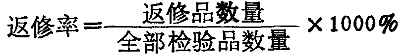 返修率fǎnxiūlǜ〈名〉 指工厂已售出的产品,在保修期内由于质量问题而返回厂家修理的那部分在售出总量中所占的比例。 返修率fǎnxiūlǜ〈名〉指工厂已售出的产品,在保修期内由于质量问题而返回厂家修理的那部分在售出总量中所占的比例。 ◇ “上菱”冰箱成品一次交验合格率达到98%,返修率为2%。(文汇报.1987.12.26) ◇ 杂牌电脑质量差,返修率也高。(人民日报.2000.8.4) 返修率fǎnxiūlǜ产品售出后一定时间内因质量等问题返回厂家进行修理的比率。是衡量产品质量的指标。例如:“引进生产线和先进技术后,现在彩色电视机的年生产能力已达20万台,黑白电视机10万台,产品返修率减少到1%以内。”(《北京日报》1983.5.18)“洗衣机外型、衣物洗净率、噪音等方面均有很大改进,返修率已降到1%以下,电冰箱返修率也降至3%以下。”(《经济日报》1986.12.12) 返修率返修品数量在全部检验产品中所占的比重。其计算公式为:  返修品是指经检验,认为技术上可修,经济上也合算,而进行返修才能达到质量标准的产品。返修后,须重新检验是否合格。如果返修不止一次,每次返修都要计入返修品数量中。 |