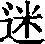 mí形声,从辵,米声,本义为迷路,引申为迷惑、辨别不清、极度爱好、使迷恋、对某一事物特别爱好的人等。 【辨析】 以“迷”作音符构成的形声字一般读mí:谜、醚。 |