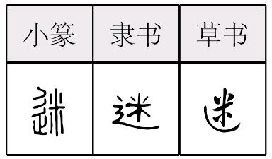 【提示】米,中间是竖,不是竖钩。米与辶,末笔原本都是捺,为避重捺,米末笔捺改点。辶,3画,上面一点,旧字形4画,上面两点; 第二笔宋体是横折,楷体是横折折撇。 *迷mí9画 辶部 (1) 分辨不清: ~乱|~惑|昏~|~了路。 (2) 因喜爱而沉醉其中: ~恋|~醉|入~|他~上了音乐。 (3) 沉醉在某一事物中的人: 财~|戏~|球~。 (4) 使迷惑沉醉: 景色~人。 迷 ☚ 迭 連 ☛ 迷mí战国以来的形声字。指分辨不清,失去了辨别、判断的能力。如:迷了路。组词如:迷信。引申指醉心于某种事物,发生特殊的爱好。组词如:迷恋。转为名词,指沉醉于某种事物的人。如:球迷|戏迷。 迷★常◎常