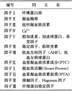 其中已按国际命名法用罗马字母编号的有12种(见表)。此外,还有前激肽释放酶、高分子激肽原以及来自血小板的磷脂等,它们共同协作,导致血液凝块的形成。
