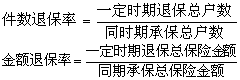 一定时期退保户数与该时期承保总户数比率 (件数退保率),还可用退保保额与承保总保额的比率 (金额退保率),加以表示。其公式: