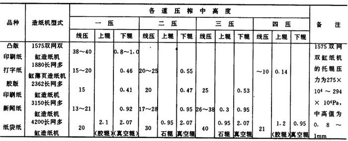 【说明】 几种典型造纸机压榨辊的中高度常用值见表1-15-31
