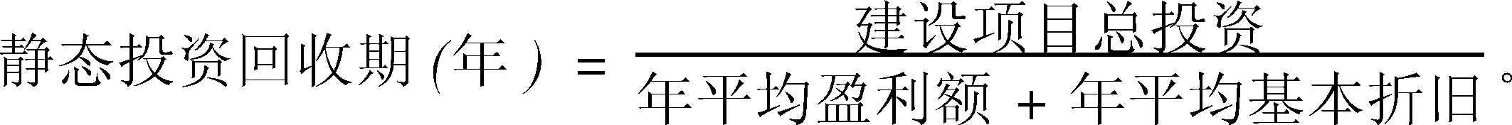 NV——采用高折现率i2时的净现值(负值)。 计算时,i1、i2要经几次试算,i1、i2之差以不超过0.5%为宜。 ❺投资回收期。建设项目投产后,用累计的收益抵偿项目所耗用的总投资所需要的时间(年)。分静态投资回收期和动态投资回收期。静态投资回收期的计算公式为: