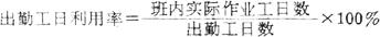 | 释义 | 出勤工日利用率 指班内实际作业工日数在出勤工日数中所占比重。 用百分数表示。反映出勤工人劳动时间利用程度的指标。计算公式为: