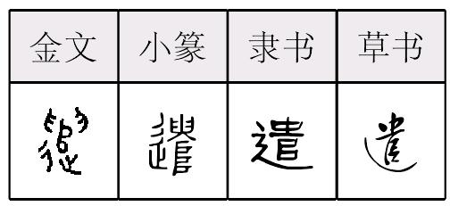【提示】右上是 , 不要错写成贵。辶,3画,上面一点; 旧字形4画,上面两点。辶的第二笔,宋体是横折,楷体是横折折撇。 *遣qiǎn13画 辶部 (1) 派: 派~|差~|调兵~将。 (2) 消除;排解: 消~|排~。 遣 ☚ 送 邐 ☛ 遣qiǎn甲骨文至西周初,不带辵(chuò,走路)旁,从双手(臼、掬的本字)捧土块(𠂤、堆的本字),从口或凵(坎的本字)或省略。有送、放义。西周又或加辵或走旁。会意使义更明显,兼形声。辵上偏旁是本字,也读qiǎn。引申为派,差(chāi),打发。如:特遣。组词如:派遣|遣送。又引申为排解,发泄。如:遣闷|消遣。 遣★常◎常