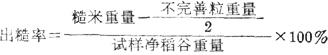 公式中糙米重量包括整粒、碎粒、不完善粒。 出糙率也有按毛谷计算的。计算公式为: 毛谷出糙率=(1-含杂率)×净稻谷出糙率 检验稻谷出糙率一般取两次试样检验,两次试样检验结果的误差如不超过0.5%,就可以两个出糙率的平均数作为检验结果。 |