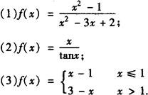 解 由于初等函数在定义域内连续,故对初等函数来说,其不连续点是使其无定义的点,对分段函数或非初等函数来说,除考虑无定义点以外还要分析分界点. (1)由x2—3x+2=0得x=1或x=2,当x=1或x=2时f(x)无意义,故此函数的不连续点是x=1或x=2. (2)当x=kπ时,tanx=0,f(x)的分母为0,又当