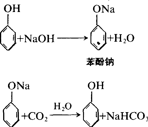 由于酚分子间可形成氢键,一般沸点均较高。多数酚为固体 (少数烷基取代的酚除外),纯净的酚无色,微溶于水,且随羟基数目增多水溶性增大。 由于酚羟基与芳环直接相连,形成p-π共轭体系,使羟基上电子云密度向芳环转移,以致羟基的H-O结合减弱,故酚有一定的酸性 (弱于碳酸):