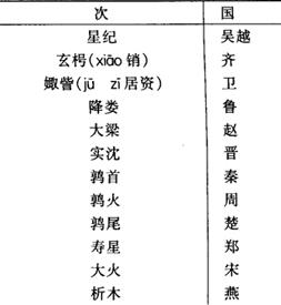 | 释义 | 分野 古天文学术语。又称星土。将天上二十八宿或十二星次与地下州国相对应,就地下州国言,称分野;就天上星宿言,称分星。始于春秋时期。《周礼·春官宗伯·保章氏》:“以星土辨九州之地,所封封域,皆有分星,以观妖祥。”分星、分野代指地域。庾信《哀江南赋》:“路已分于湘汉,星犹看于斗牛”,“以鹑首面赐秦,天何为而此醉?”斗牛指吴越之地、鹑首指秦地。不同时代分野不尽相同。分野中有反相属现象,如土南而星北,土东而星西,明人周祈《名义考》释曰:“先儒以为受封之日,岁星所在之辰,其国属焉。” 表甲 (据《淮南子·天文训》) (据《史记·天官书》) (《周礼·保章氏》郑玄注)