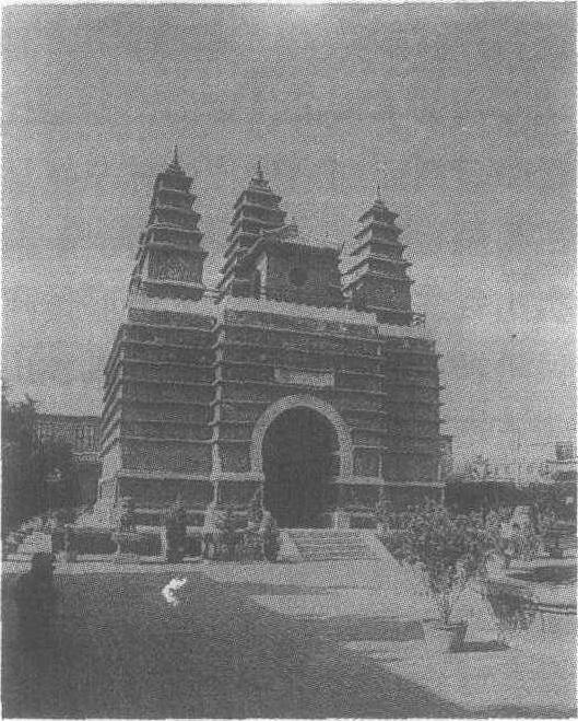 ☚ 万部华严经塔 杂项 ☛ 金刚座舍利宝塔 金刚座舍利宝塔在呼和浩特市旧城东南有一寺院,内有一座金刚座舍利宝塔(即在一高座上建五座小塔),相传建于清雍正十年,赐名慈灯寺,因寺有五塔,故俗称五塔寺。 ☚ 美岱召 辽中京遗址 ☛ 金刚座舍利宝塔 金刚座舍利宝塔全国重点文物保护单位。位于市区五塔寺后街。原在慈灯寺(俗称五塔寺)内,寺已毁。因金刚宝座上有五塔,亦称五塔,蒙语为“塔布·骚布日格”。始建于清雍正五年(1727),建成于雍正十年。为比较典型的金刚宝座式塔,由塔基平台、金刚宝座和顶部五座方形玲珑宝塔组成。通高16.5米。金刚座平面呈“凸”形,高6.8米,南向有拱门,上嵌汉白玉塔名匾额,以汉、蒙、藏文刻成。宝座共七层,每层均有窄檐挑出。塔身表面满刻佛、菩萨、佛迹、景云、菩提树、金刚杵、四大天王、五佛宝座、经文和119尊鎏金小佛像,镂刻十分精美。须弥座又以彩色琉璃砖贴面,更显华丽。由拱门登阶梯可达金刚宝座顶部方亭,五塔位于亭后,其居中者略高,共七级,高8.7米,四角之塔各五级,均为绿色琉璃挑檐的密檐式建筑,其形式源于印度佛陀迦耶精舍。塔座后山墙上嵌有三幅圆形石刻:蒙文天文图、须弥山分布图、六道轮回图。其中蒙文天文图尤为珍贵。 ☚ 玉泉井 蒙古文天文图经石刻 ☛ 金刚座舍利宝塔清代寺塔。又名 “五塔”。位于内蒙古自治区呼和浩特市旧城五塔寺街。该塔始建于清雍正年间,原为 “慈灯寺”(俗称 “五塔寺” )内的一幢建筑,寺宇早已圮废。塔为砖石结构,通高约13米,平面长方形。金刚座建在台基上,座下层为须弥座,束腰部分有砖雕的狮、象、法轮、金翅鸟和金刚杵等佛教信物图案。座身下半部镶嵌用蒙、藏、梵文3种文字所书的金刚经文,刻工细致工整; 上半部为千佛龛,龛中刻一佛坐像,两旁为金瓶柱,龛上面为梵文六字真言,再上挑出短檐,南面正中开券门,门旁为四大天王像,门上正中嵌蒙、藏、汉3种文字书写的 “金刚座舍利宝塔” 石刻匾额。门内为无梁殿,东南隅设有通向座上的阶梯。座上设置5座小塔,当中的小塔7层,四角的各为5层,各小塔第一层嵌佛像、菩萨及菩提树等砖雕,第二层以上设千佛龛,造型优美,比例协调,工艺技巧精细娴熟,显得玲珑秀丽。塔后照壁上镶嵌有蒙古文天文图石刻,为研究天文学史的重要资料。该塔1988年被国务院确定为全国重点文物保护单位。 |