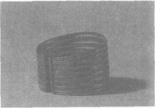 元。高4.3厘米,直径6厘米。1960年4月江苏省无锡市南郊钱裕墓出土。江苏省无锡市博物馆藏。此金箍系用金片锤揲成圆形,并锤出八道凸弦纹,两端折回。其形制奇特,较为罕见。