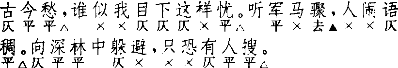 | 释义 | 金莲子 金莲子施惠 《拜月亭》 ![]() 前腔 换头 前人 ![]() 正格六句:3△,7△。3▲,4△。5△,5△。换头格六句:7△,7△。3▲,4△。5△,5△。此曲早见于《张协状元》、《荆钗记·误讣》、《白兔记·分别》、《拜月亭·旷野奇逢》,可见用得很普遍。换头首句改为七字句,以下全同正格。末二句原只作七字句×平×仄仄平平,亦有破为两个四字句者;《南词新谱》所收《拜月亭》改为两个五字句,则是后来通行作法。《南词简谱》谓:“末二句皆五字,上句宜上三下二,下句宜上二下三。”可是作者均作普通五字句,作上三下二句式者实少见。〔金莲子〕常以一支入套,例用于套末;有时也单用一支或叠用二支,角色走上唱,代替引子。与引子〔金莲子〕不同。以〔金莲子〕为主的集曲有〔金莲带东瓯〕,见《南词新谱》。 ☚ 秋夜月 中吕宫 ☛ 古代名物 > 花卉類 > 草部 > 多年生 > 荇菜 > 金蓮子 金蓮子 jīnliánzi “荇菜”之别名。 |