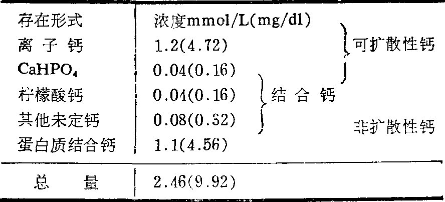 ☚ 无机盐类 磷 ☛ 钙 钙构成人体的元素中,钙仅次于氧、碳、氢、氮而居第五位,平均占体重的1.9%。成人体内含钙量约1000~1300g。钙是体内骨、齿等坚硬组织的主要成分。在体液中,钙对细胞的代谢与功能有重要的调节作用,维持细胞内外钙离子浓度的恒定具有重要生理意义。血钙浓度改变会影响神经、肌肉兴奋性,可产生严重症状,血钙浓度的正常有赖于钙的吸收、排泄、成骨及溶骨等生理过程的相对恒定,这些过程主要受甲状旁腺素、降钙素及活性维生素D的调节。 表1 成人体内钙的分布