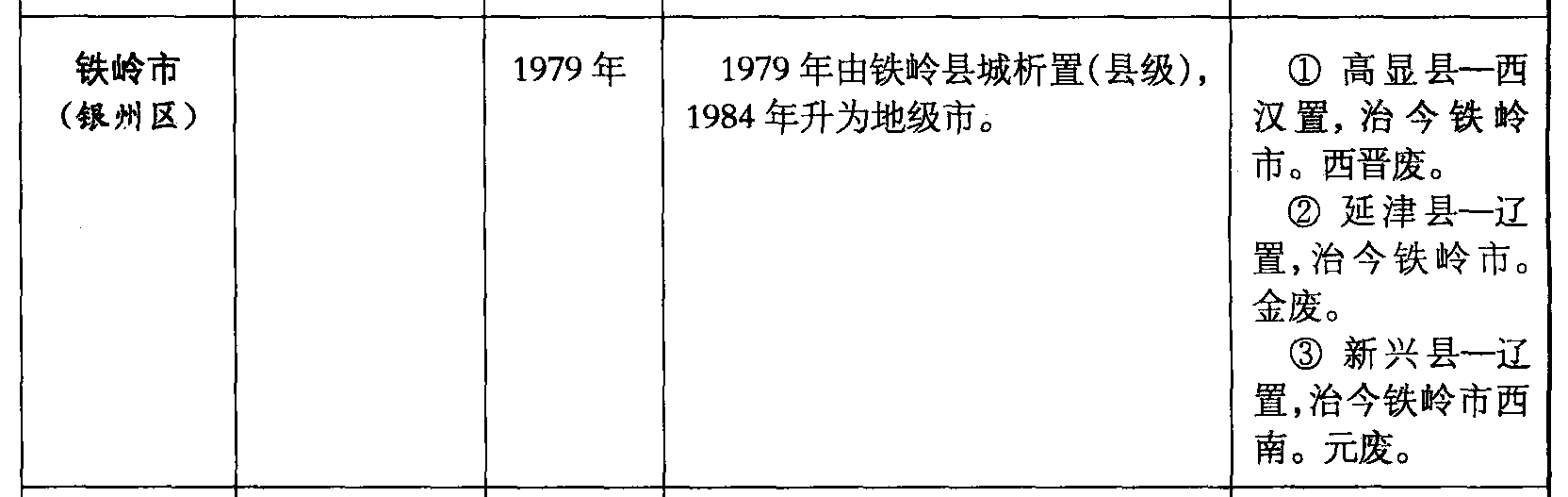 铁岭市(银州区)1979年1979年由铁岭县城析置(县级),1984年升为地级市。❶ 高显县—西汉置,治今铁岭市。西晋废。❷ 延津县—辽置,治今铁岭市。金废。❸ 新兴县—辽置,治今铁岭市西南。元废。