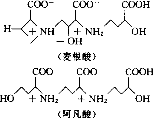 铁肥iron fertilizer具有铁(Fe)标明量,以提供作物铁素营养为主要功效的物料。1844年E.格里斯(Gris)确定铁是作物的必需营养元素。作物缺铁十分普遍,世界缺铁失绿的苹果树约占苹果树总面积的15%,几乎所有商品柑橘生产地区都有缺铁问题存在;在中国的石灰性和偏碱性土壤上的常绿树、落叶树、牧草和大田作物均有缺铁发生,以果树尤为严重。一般认为,作物缺铁,不是绝对由土壤缺铁引起,而是因为土壤的pH值、HCO3-高或养分不平衡等障碍因子影响作物对土壤中铁的吸收和利用。 作用 铁对作物的营养作用:❶铁是作物形成叶绿素不可缺少的元素。铁虽不是叶绿素的组成成分,但作物缺铁时,叶绿素不能合成,并使叶绿蛋白解体而发生失绿; ❷铁是许多酶的成分或活化剂。因此铁与作物的光合作用、呼吸作用、硝酸还原和豆科作物的固氮作用都有密切的关系; ❸铁参与蛋白质和核酸的合成,作物缺铁,蛋白质合成降低,RNA和核糖体含量减少。此外,铁是磷酸蔗糖酶的最好活化剂,参与蔗糖的合成。 作物缺铁首先从顶端或嫩叶开始出现黄叶,轻则叶脉间发黄,严重时全株黄白化。黄化的植株生长缓慢、易染病、产量低、品质差,严重缺铁的果树树梢干枯,甚至死亡。如选择适宜的铁肥品种,施用方法得当,能有效控制植株缺铁黄化病的发展,从而促进植株生长,提高产量和品质,如缺铁柑橘在结果前喷施1%的尿素铁,对叶绿素含量、结果数、单株产量及果实的维生素C和糖的含量都有一定的提高。 铁与人类和动物的健康有密切的关系,铁在体内,以离子形态与卟啉及蛋白质结合形成血红蛋白和肌红蛋白,因此体内缺铁将引起贫血,俗称“黄肿病”。铁在体内有价数的变化,Fe2+=Fe3++e,在电子传递、氧化还原反应及氧的供应和运输中起着重要的作用,人体缺铁,无法带给细胞足够的氧,将导致头晕乏力,呼吸困难,脑内缺氧,思维减退,病人易患口腔炎、舌炎、皮肤及毛发干燥等。施用铁肥可提高农产品中的含铁量,进而影响人的摄入量及贮存量。但铁过多,对人和动物的胰岛腺有不利的影响,并有抑制白细胞杀菌的功能。 资源和品种 世界上的铁矿床大部分是赤铁矿和褐铁矿,主要分布在前苏联、美国、澳大利亚、巴西、法国和瑞典、印度等国家。中国的铁矿资源也比较丰富,80年代已探明的储量约400多亿吨,居世界前列。铁矿资源主要分布在辽宁、河北、四川、山西、内蒙古、甘肃、山东、广东等地。在地壳中含铁矿物有300多种,主要铁矿品种有赤铁矿(Fe2O3)、针铁矿(Fe2O3·H2O)、褐铁矿(nFe2O3·mH2O)、磁铁矿(Fe3O4)、菱铁矿(FeCO3)、黄铁矿(FeS2)和钛铁矿(FeTiO3)等。 常见的铁肥品种有:❶硫酸亚铁(FeSO4·7H2O),含Fe 19%,青绿色结晶,易溶于水。是冶金厂的副产品,价格便宜,俗称铁矾或绿矾,是农业上最常用的铁肥品种; ❷硫酸铁[Fe2(SO4)3·4H2O],含Fe 23%; ❸磷酸亚铁铵[FeNH4PO4·H2O)],含Fe 29%,缓效铁; ❹硫酸亚铁铵[(NH4)2SO4·FeSO4·6H2O],含Fe14%,缓效铁; ❺螯合铁(EDTA—Fe等),溶于水。此外,还有黄腐殖酸铁、柠檬酸铁、尿素铁,以及硫酸亚铁与有机肥料配制的有机无机铁肥等。 施用技术 施用依据 土壤条件和作物种类是作物是否施用铁肥的重要依据。土壤中的铁是很丰富的,总量高达2%,以高铁(Fe3+)、亚铁(Fe2+)离子或化合物的形态存在于土壤中,前者对作物的有效性低,后者的有效性高。土壤中各种形态的铁及其有效性受土壤pH值和氧化还原电位等的影响,在旱地中,铁一般以氧化铁或氢氧化铁存在,在石灰性土壤中,铁形成碳酸盐,溶解度很低,故在碱性条件,通气良好的土壤容易缺铁;在渍水和有机层条件下,高铁易还原成亚铁,对作物的有效性高,故水田不易缺铁。在长期淹水条件下,由于土壤中亚铁含量过多,可能使作物出现中毒。此外土壤中的元素间平衡关系,如磷(P)、锌(Zn)、锰(Mn)、铜(Cu)含量高,钾(K)含量低都可加重作物缺铁。氮肥形态也影响铁的有效性,一般施用铵态氮肥可提高土壤中铁的有效性,而施用硝态氮会加重铁的缺乏,在有效铁含量低的土壤上往往需要施用铁肥以防止作物有效铁的不足。 作物种类不同,其缺铁反应机理以及对土壤中铁的吸收利用能力各异。一般双子叶植物对缺铁反应敏感,而单子叶作物在缺铁时根系能诱发分泌一类螯合铁能力极强的物质,称为植物摄铁素(phy-tosiderophore)。如阿凡酸(avenic acid)或麦根酸(mug-ineic acid),其化学结构式如下: