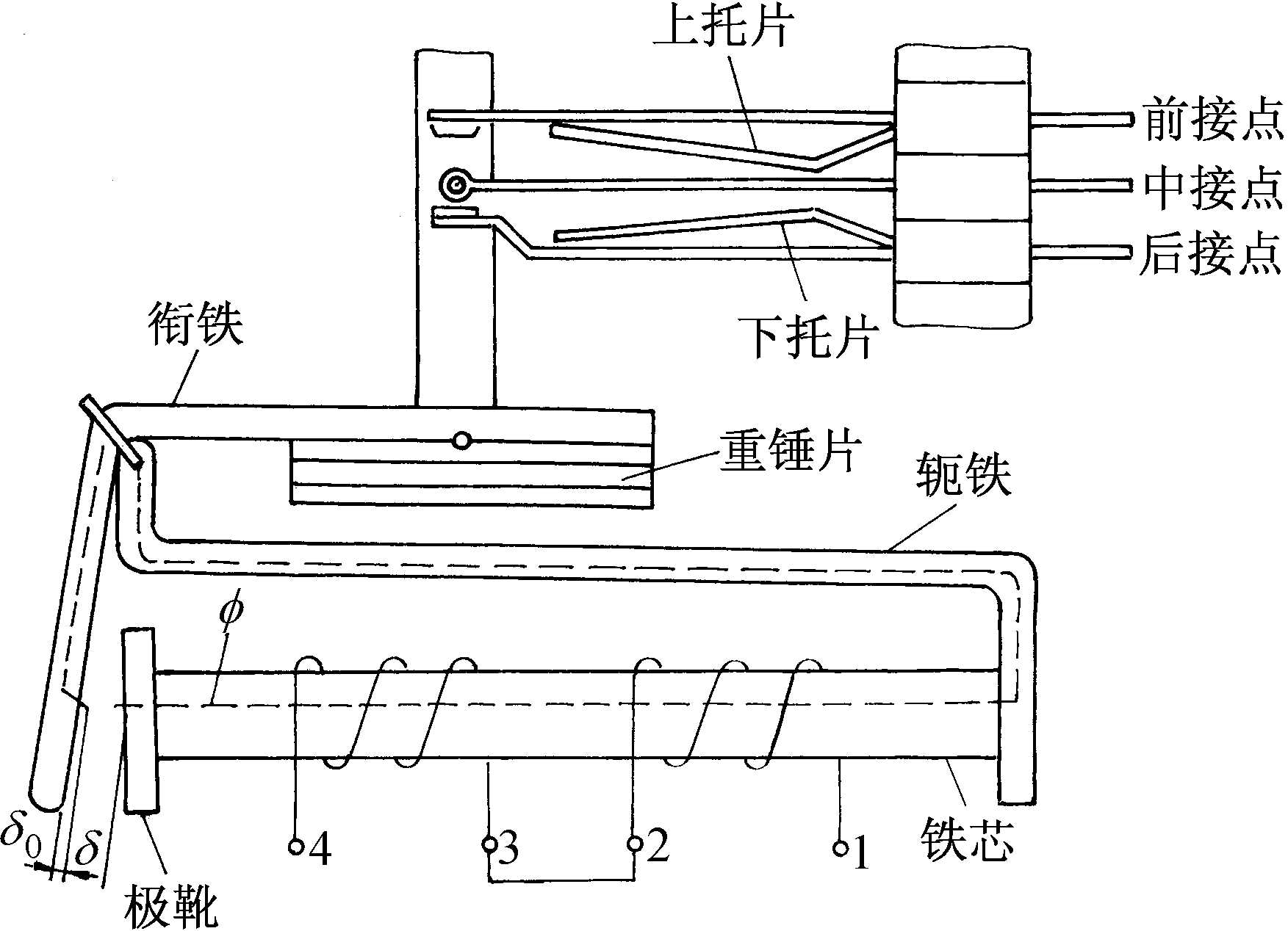 直流无极继电器结构示意图