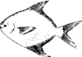 | 释义 | 银鲳harvestfishStromateoides argenteus(Euphrasen),硬骨鱼纲,鲈形目,鲳科。长达40 cm。体侧扁而高,卵圆形。头小,吻圆钝。口小,牙细。背、臀鳍前部鳍条甚长,镰刀状。成鱼腹鳍消失。主食水母、甲壳类。夏初游向内海产卵,卵浮性。受精卵在水温25.6~26.4℃,约24 h孵化。分布于印度尼西亚、菲律宾、中国沿海。为名贵食用经济鱼类,肉味美,多数鲜销,部分制罐。