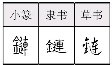 链读音l·ian(ˋ),为ian韵目,属an—ian—uan—üan韵部。力延切,平,仙韵。 ❶链子;铁链子。 ❷海洋上距离单位,十分之一海里为一链,即185.2米。 上一条: 僆 下一条: 鏈 链〔lian〕 链子 〔lian·zi〕lianb zit. 链鏈{}四6155①名铁锁链,刑具。吴语。江苏苏州。②名发条;弦(钟表弦)。粤语。广东广州〖lin22〗。上~‖钟~。③动(用链子)绑;缚。闽语。福建厦门〖lian22〗。把狗~起来。   链鏈liàn❶链子,用许多金属小环连接成的像绳索的东西 △ 锁~|锚~。 ❷像链子的东西 △ 拉~。 链鍊❶用金属环连接而成的长条:~子︱~条︱~球︱表~︱铁~︱珠~︱锁~︱锚~︱项~。 ❷计量海洋上距离的长度单位,一链等于十分之一海里,合185.2米。 链liàn链lian链钩 链轨1 链接 链锯 链球 链式 链套 链条 链罩链子 表链 吊链 拉链 锁链 铁链 项链 链传动 链霉素 链球菌 链式反应2 链liàn❶ 链子。1879年杨少坪《增广英字指南》卷二:“chain,链。” ❷ 海上距离的计量单位。1链等于1/10海里,合185.2米。1884年《日本地理兵要》卷二:“灯台与所对东岸实测点之南端直线内可以投锚,可得深四寻底质粘土之地,乃离马头凡三链半之地也。”1921年孙中山《建国方略》之二《物质建设(实业计划)》:“每链为一海里十分之一。” 古代名物 > 資產類 > 五金礦產部 > 五金 > 鏈 鏈 lián 亦作“連”。鉛礦石,亦泛指鉛。《史記·貨殖列傳》:“江南出柟梓、薑桂、金、錫、連、丹砂。”裴駰集解引徐廣曰:“〔連〕鉛之未鍊者。”《漢書·食貨志下》:“鑄作錢幣皆用銅,殽以連錫。”顏師古注:“李奇曰:‘鉛錫璞名曰連。’……許慎云:‘鏈,銅屬也。’然則以連及錫雜铜而爲錢也。此下又云能采金銀銅連錫,益知連非錫矣。”《廣雅·釋器》:“鉛礦謂之鏈。” 链*鏈C1B4 (一)lian❶用金属环连接而成的长条:锁~/表~/铁~子。 ❷海上计量短距离的长度单位,1链为185.2米,10链等于1海里。 (二)lian<文>铅矿(见《广雅》)。 链子 链子链(链条;铁~;拉~;表~;项~;铜~) 锁 连接铁环成串之物:锁链 机械上传动用的链子:链条 自行车、摩托车等的链条:链子 链条中的一节:镮 弯曲的锁链:钩锁 连结铁锚和船舶的铁链:锚链 系带脚镣的铁链:镣鎌 长的锁链:长锁 铁链条:铁绠 铁锁链:铁绳 粗铁链:铁索 (用金属的小环连起来制成的像绳子的东西:链子)