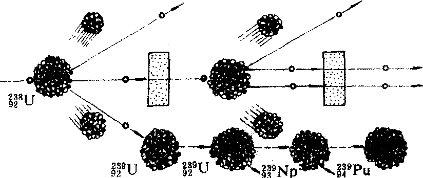| 释义 | 链式反应 链式反应lianshi fanying自持的裂变反应的简称。亦称连锁反应。链式反应的过程基本上是以一个中子为媒介的、裂变核素部分质量转化为能量的过程。费米依据铀核裂变释放出约200兆电子伏的能量,以及裂变时铀核释放出中子的事实推想:235U裂变时释放出的中子又可裂变临近的其它235U,这样不断延续下去,235U的裂变一经开始就可以自行的以增长的形式不断进行下去,直到所有的铀核都发生反应为止。费米这一设想被匈牙利科学家西拉肯首先用实验加以证实。费米又于1942年领导建造了世界上第一个核反应堆。实现了有控制的核链式反应。图1为23592U发生链式反应的示意图。裂变过程中放出的中子有三种归宿: