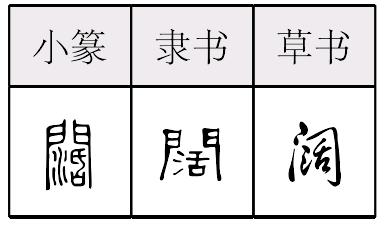 kuò闊,形声,从門,活声,本义为疏远、远离,引申为时间久远、面积宽广、距离远、奢侈、富裕等。《简化字表》类推简作“阔”。 |