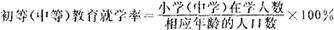 某一时点在初等(中等)学校就读的人数与相应年龄的人口数之比,用百分数表示。计算公式是: