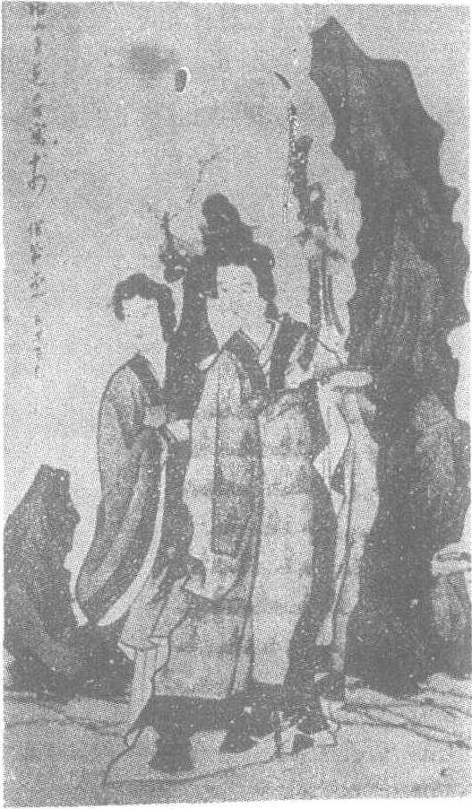 | 释义 | 陈洪绶女仙图轴 陈洪绶女仙图轴明。陈洪绶绘。绢本设色。纵173.2厘米,横97.1厘米。北京故宫博物院藏。陈洪绶(公元1598—1652年),字章侯,号老莲,明亡,出家云门寺为僧绘改号悔迟、悔僧、弗迟、云门僧、九品莲台主者等,浙江诸暨人。从小喜欢绘画,四岁时就能在墙上画八、九尺高的关羽像。早年师承蓝瑛,深得蓝瑛赏识。他工人物、花鸟、山水。尤其人物,造型夸张,线条细劲,设色淡雅,着意于传神,兼得李公麟、赵孟頫的白描,特别是吴道子的设色之法。所画人物颇受时人推崇,与崔子忠一起被誉为“南陈北崔”。他的人物画最大特征是线条的运用,笔调有二,前期线条多略纵粗壮,方折有力,后期线条清圆细劲,凝练沉着。画中设色常由其弟子严湛来完成。他曾为《西厢记》、《九歌》等文学名著作插图,也画过《水浒叶子》。所作花鸟、山水等构图新奇,色彩浓丽,富于装饰趣味。清末的“四任”(任熊、任薰、任颐、任预)继承并发展了他的画风,至今仍有少其后尘者。陈洪绶是个有民族气节的画家,明亡后,清兵强制他作画时,他宁死不屈,后遁入空门。曾在绍兴、杭州卖画为生。此幅为其中早年之作。一块秀逸、峭拔的湖石旁,女仙手拄挂着宝葫芦的仙杖,悄然而立,凝神俯视前方。其后跟随的侍女,手捧高大的花瓶,瓶中插着绽开的山茶和梅花。二女仙眉清目秀,风姿绰约。画的左边自识:“溪山老莲洪绶写于惜华堂。严湛设色。”严湛,字水子,山阴人,陈洪绶弟子,经常为陈洪绶的画设色。此图即为师生合作。图中仙女衣纹线条方折有力,衣上花纹工细匀整,粗中有细,富于变化,具有作者早期画的明显特征。此图有伪本,但真迹亦不止一幅。